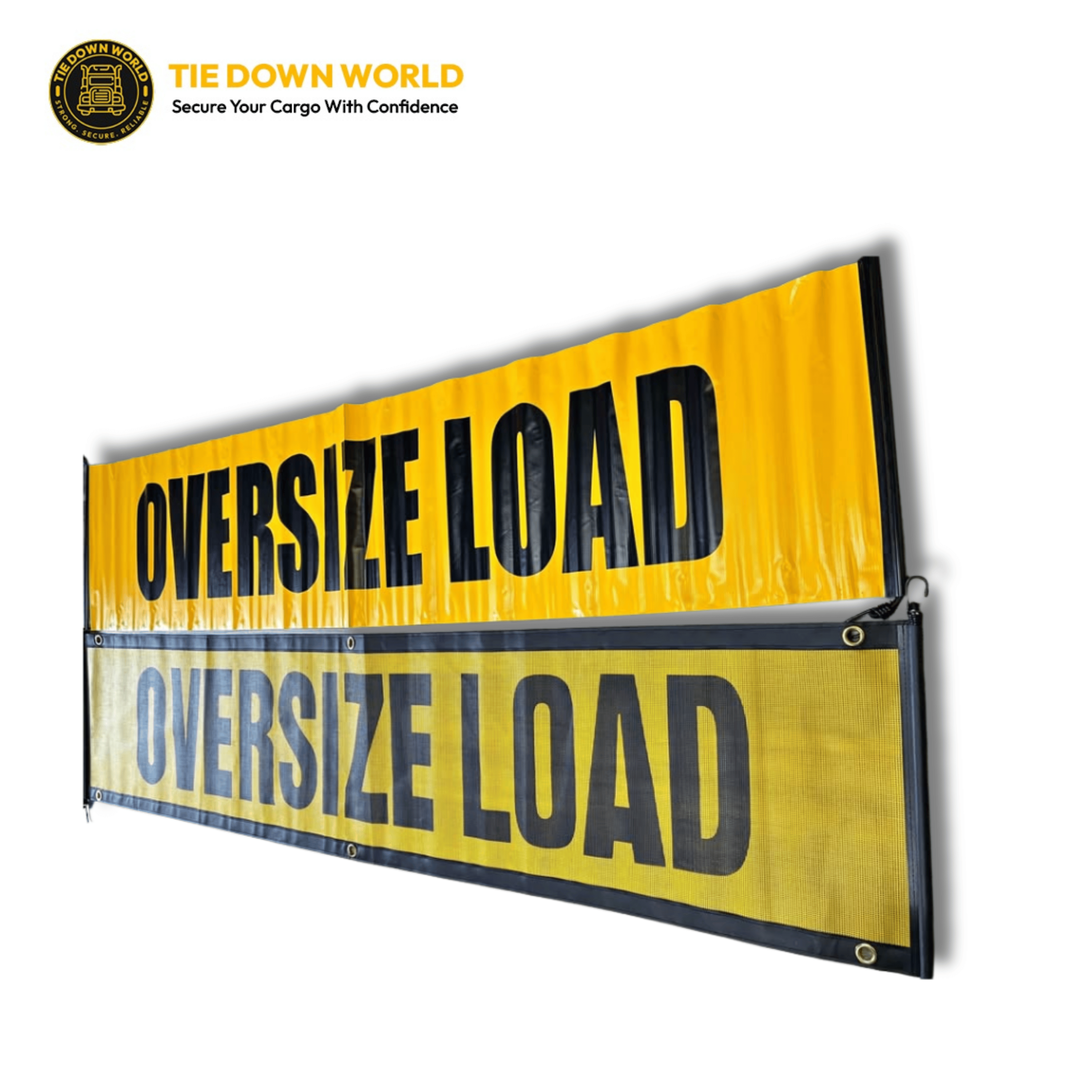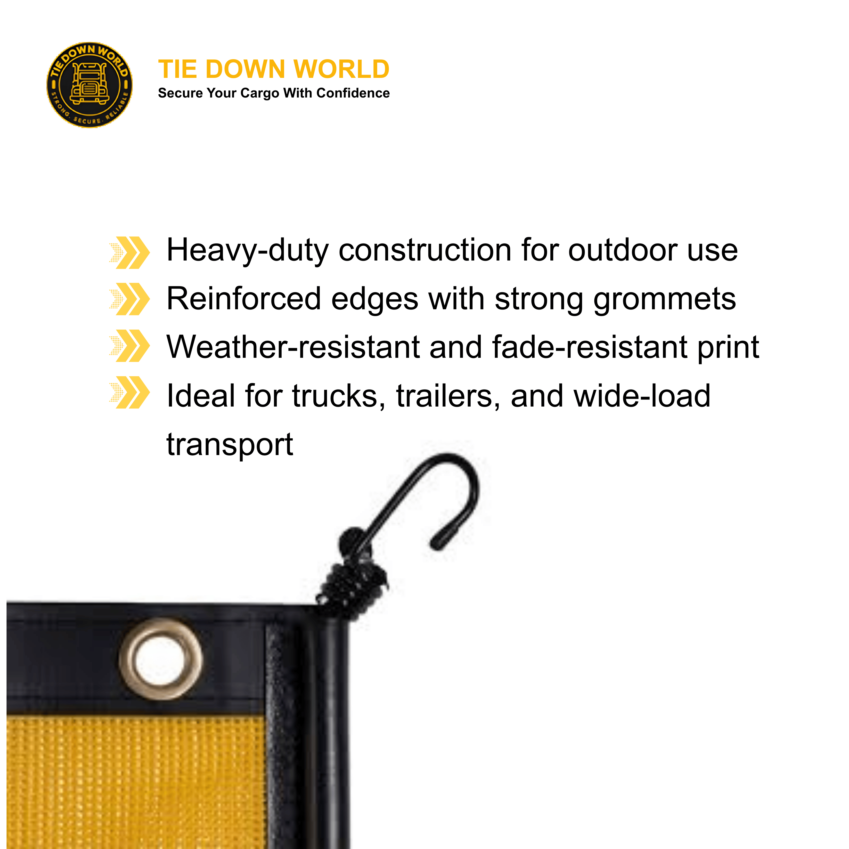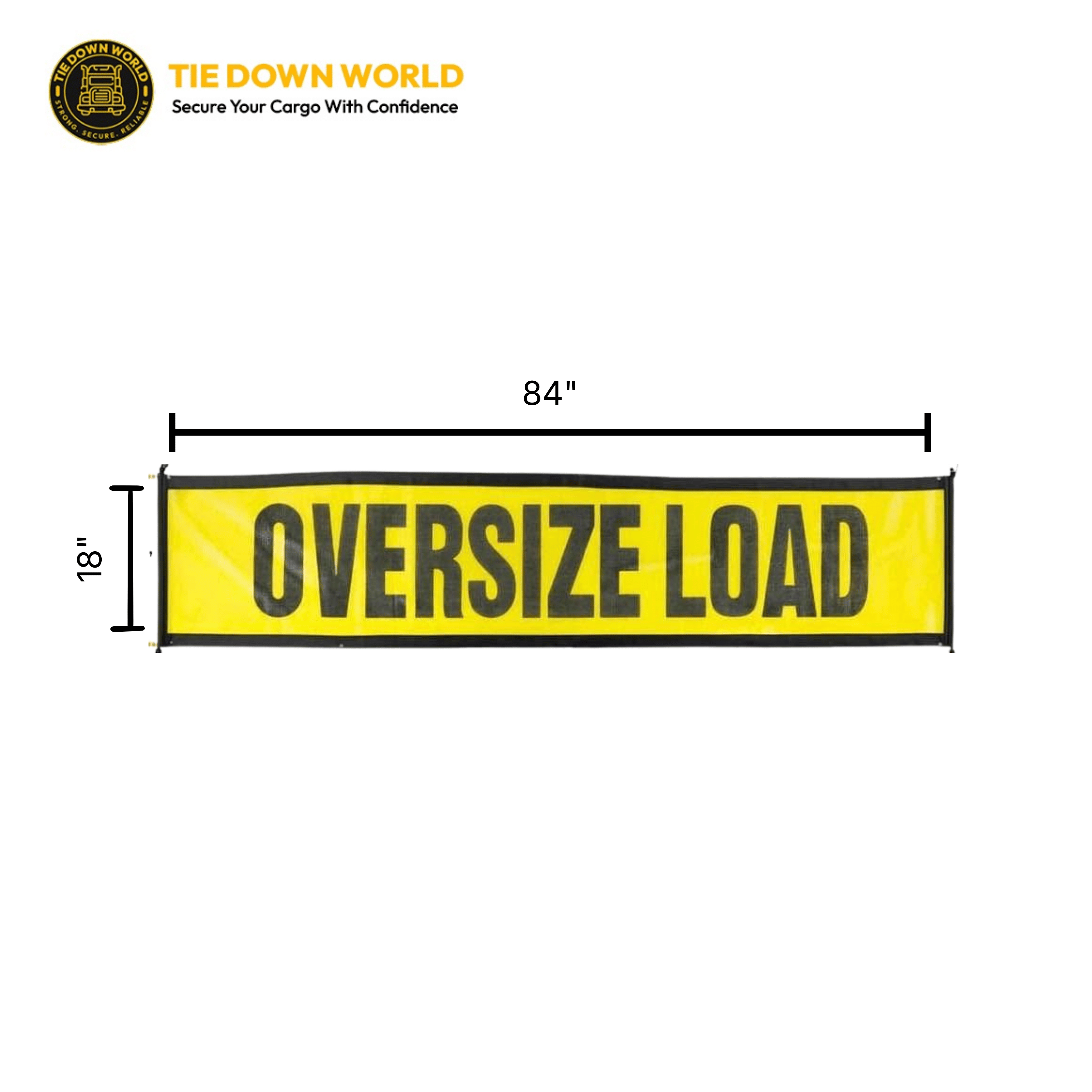 The 18" x 84" Mesh OVERSIZE LOAD Banner from Tie Down World is built for maximum visibility and airflow during transport. Made from durable mesh material, it withstands highway conditions while clearly marking wide or over-dimensional loads for safety and compliance.