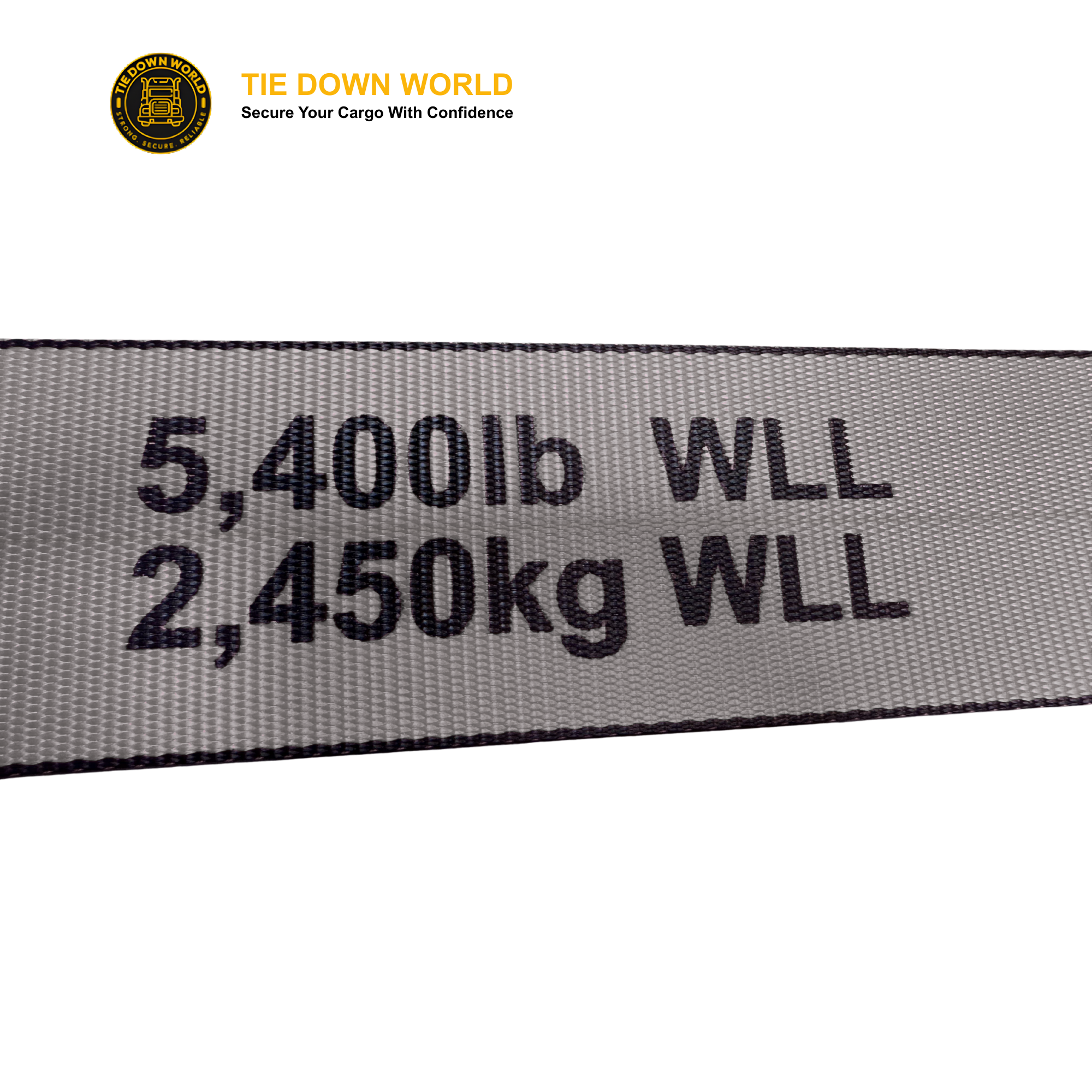 4" x 30' Premium Strap with Flat Hooks (Grey) – 5,400 LBS WLL