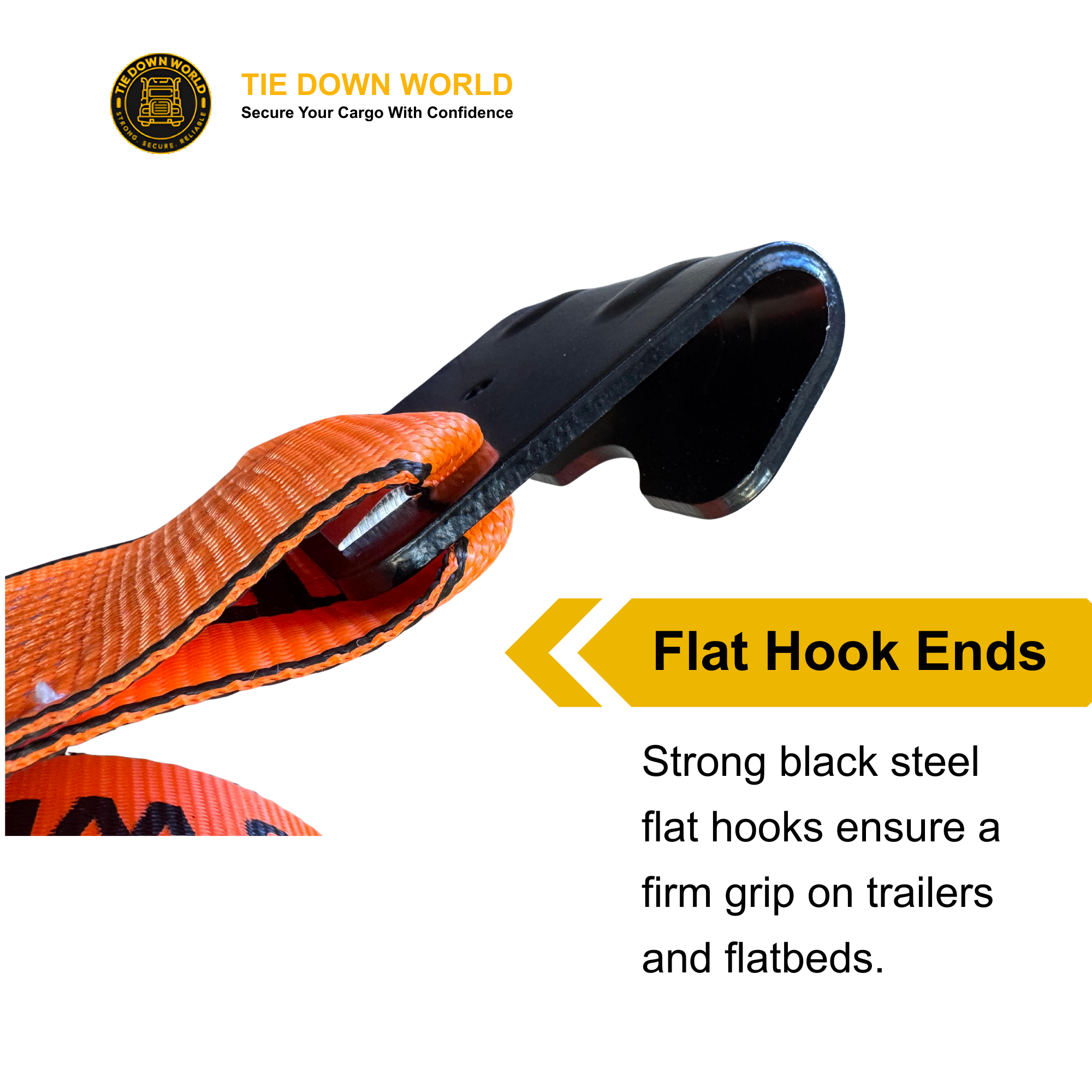 4" x 30' Premium Strap with Flat Hooks (Orange) – 5,400 LBS WLL