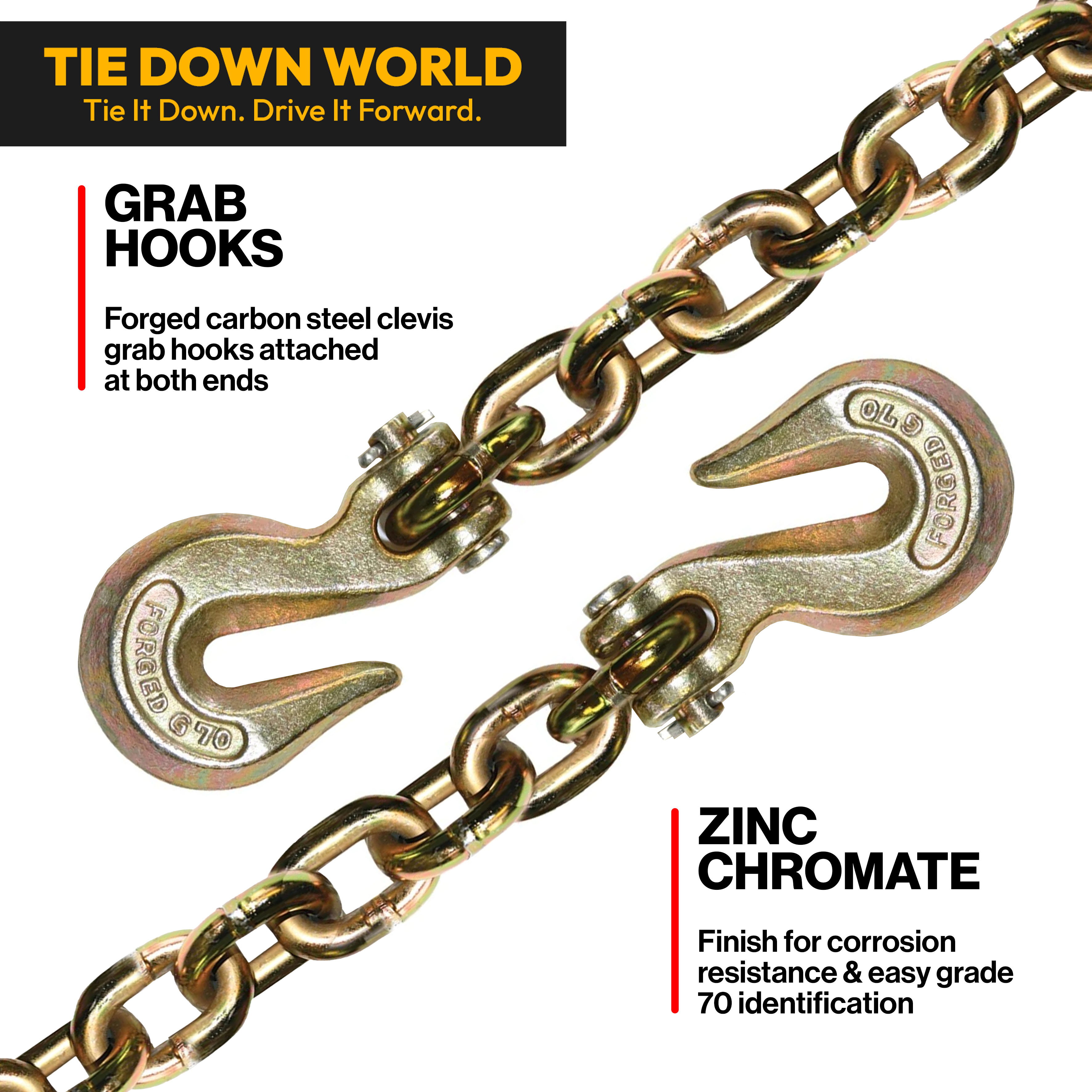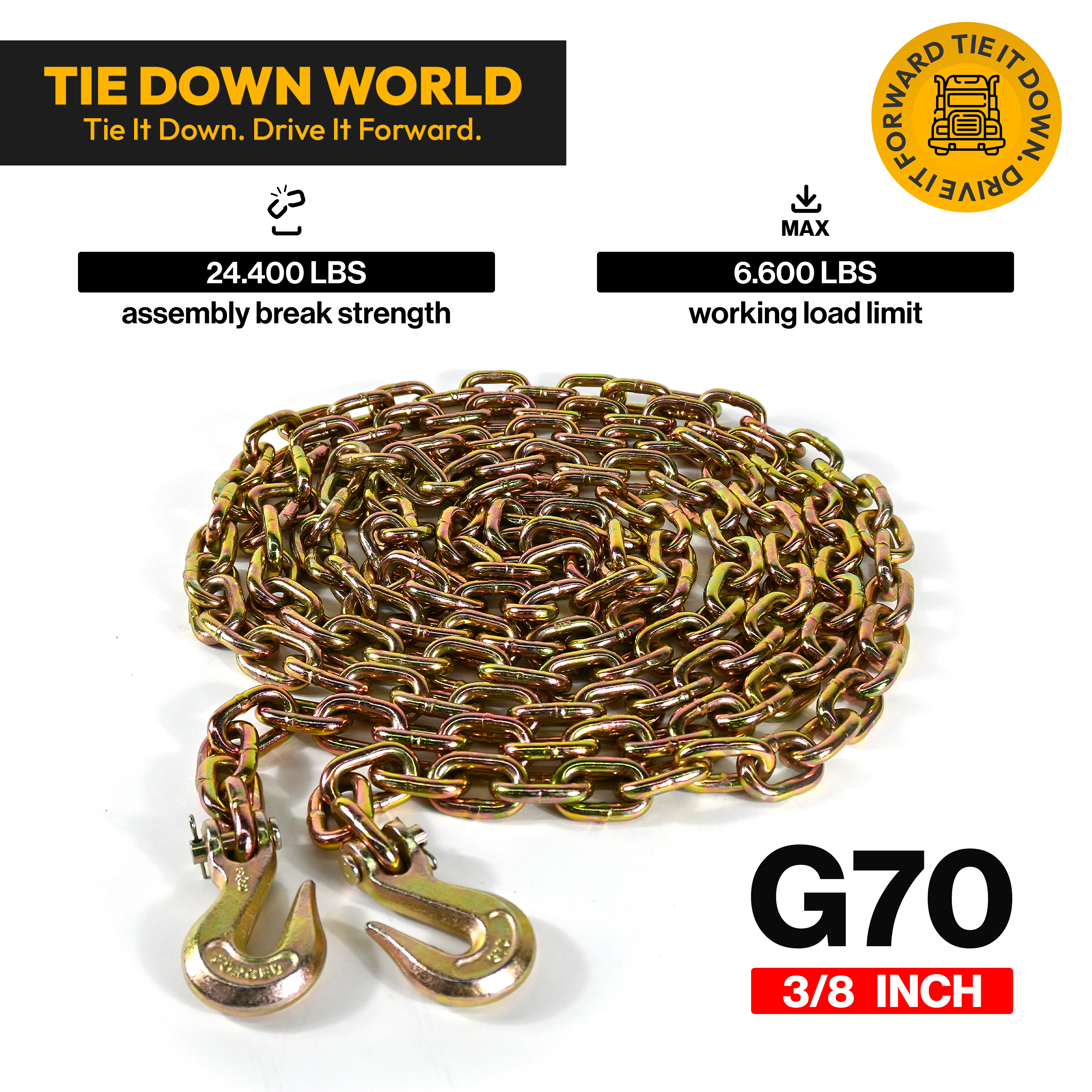 Perfect for the towing, logging, and transport industries, this G70 chain is a trusted choice for professional haulers. Choose Tie Down World for quality, safety, and performance.