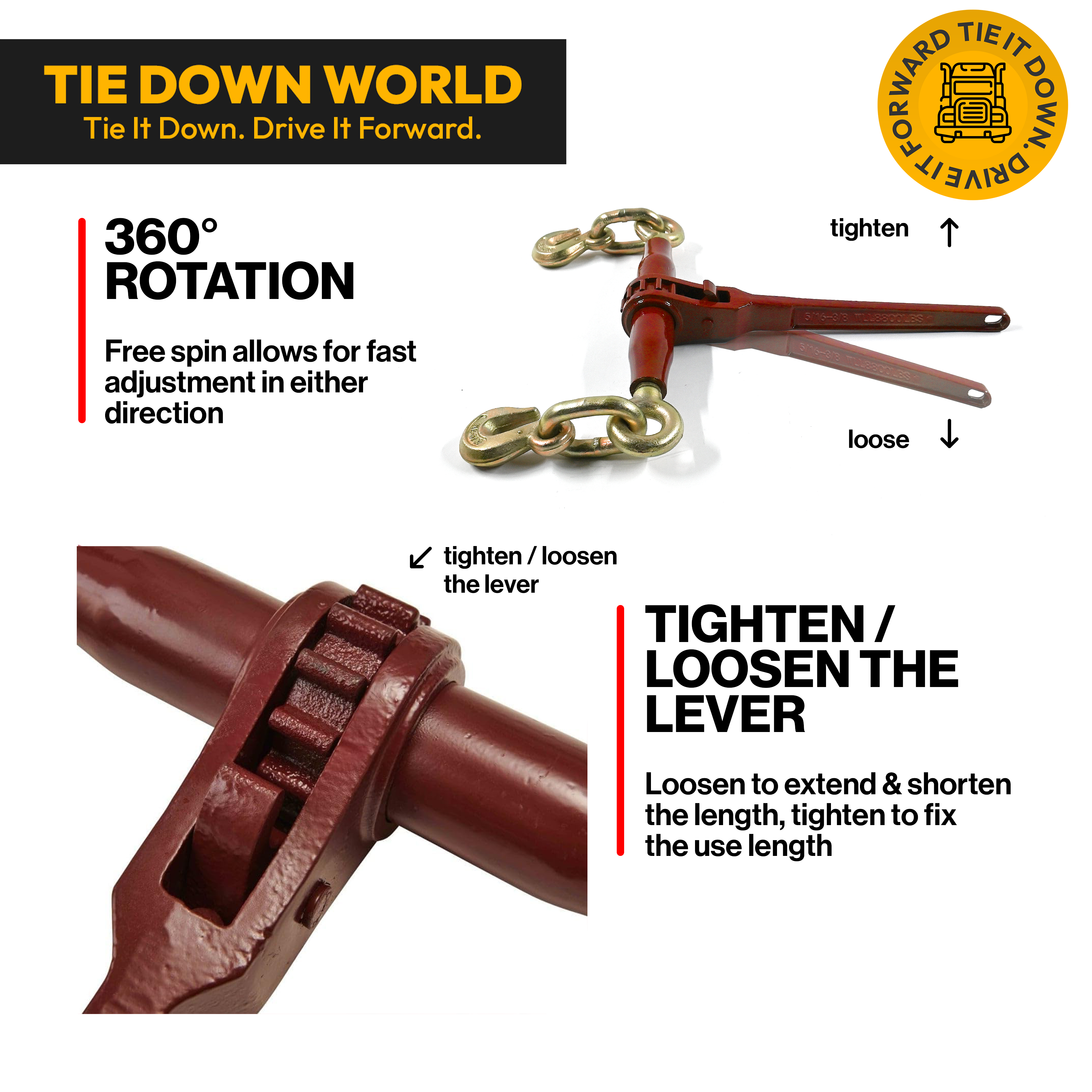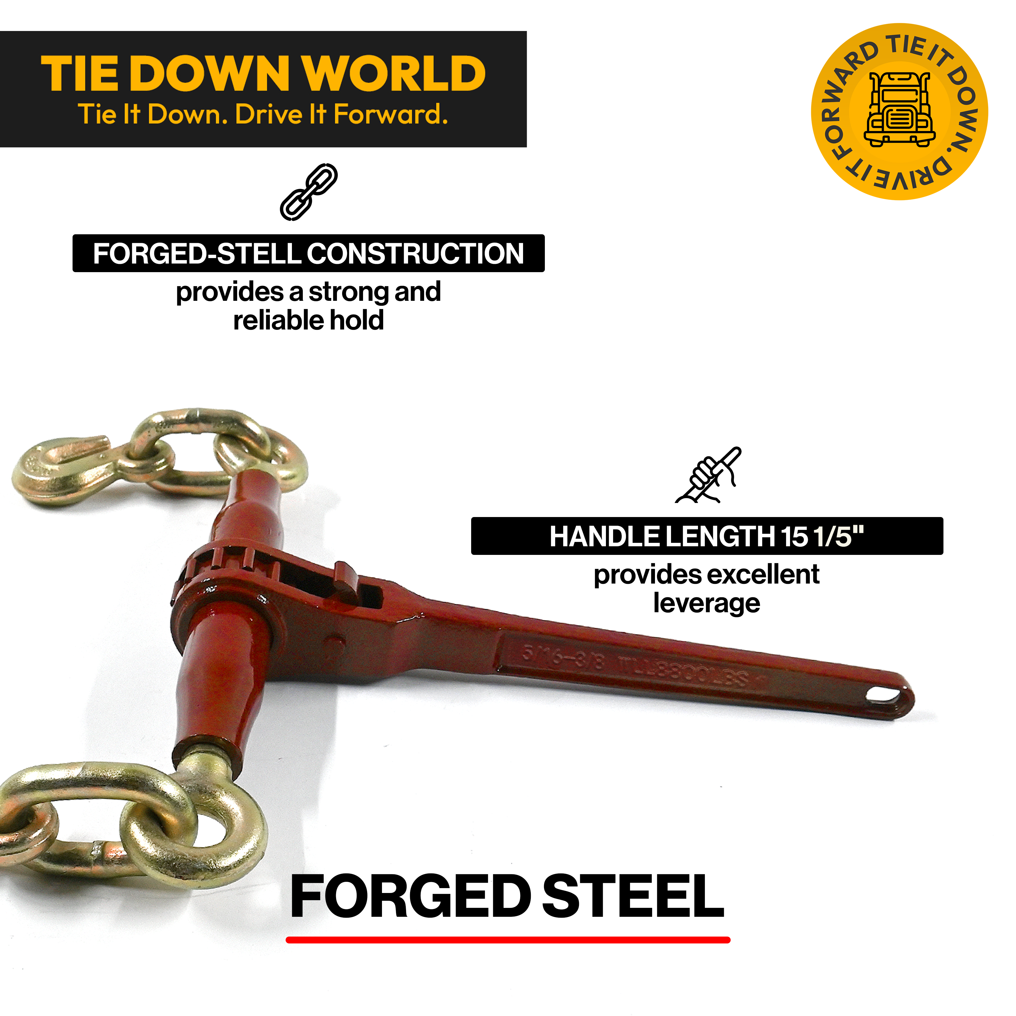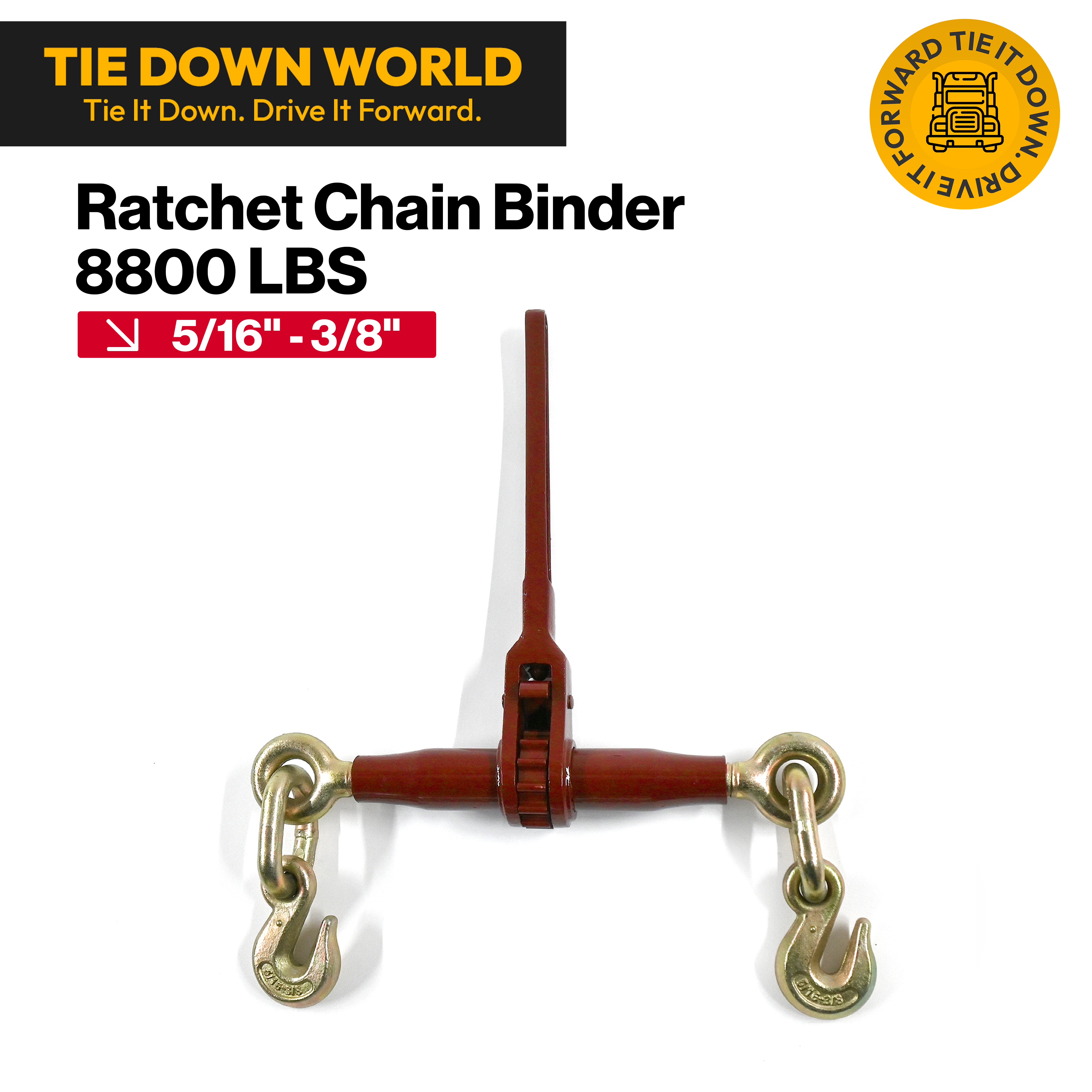 The Ratchet Chain Binder 5/16" - 3/8" 8800LBS PRO from Tie Down World is built for secure, high-tension cargo control in tough transport environments. Designed for use with 5/16" to 3/8" chains, this heavy-duty binder delivers strength, safety, and smooth ratcheting performance to ensure your load stays firmly in place.