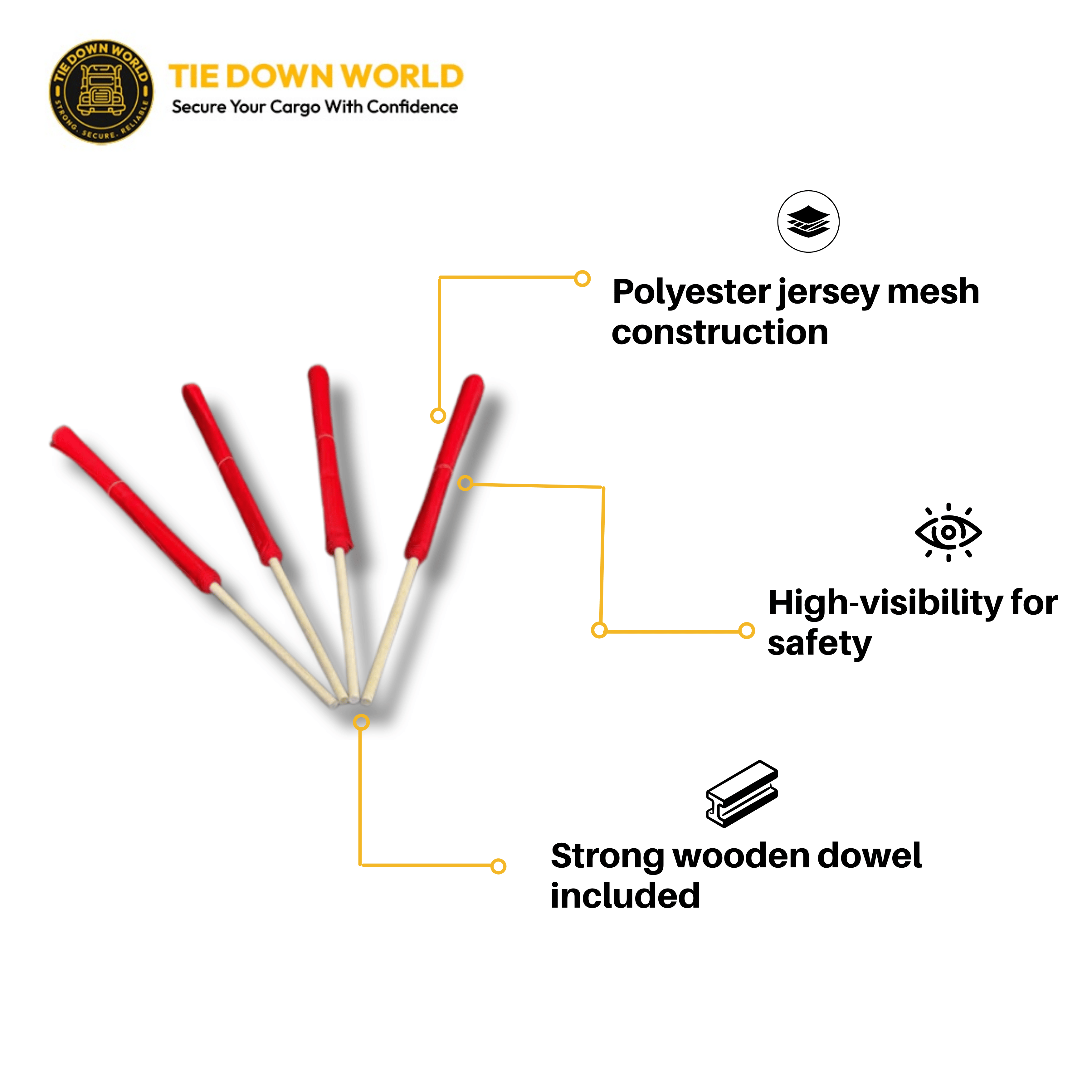 Each flag comes mounted on a sturdy 24" wooden dowel, making it perfect for hand-held traffic control, roadside safety, and wide-load marking. Durable, lightweight, and built for daily professional use, this 4-pack of safety flags is a must-have for truckers, escorts, and construction crews.